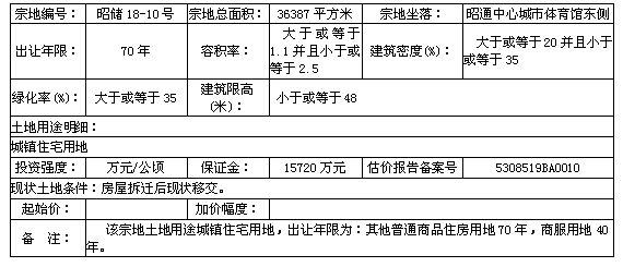 昭通中心城市昭儲(chǔ)18-10號(hào)地塊國(guó)有建設(shè)用地使用權(quán)拍賣出讓公告