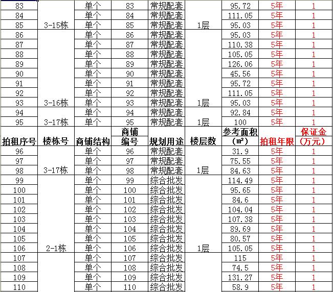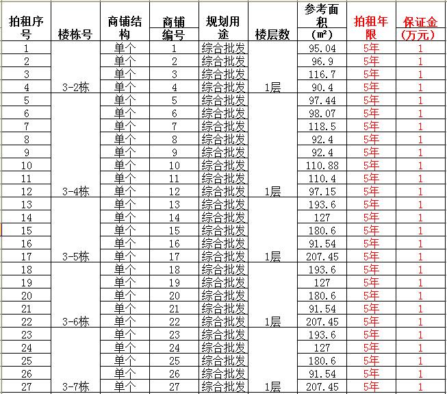 (一)拍租單個(gè)商鋪129間,使用期5年,每間商鋪預(yù)交競租保證金1萬元, 詳見商鋪簡介(欲競租多間商鋪,保證金類推);